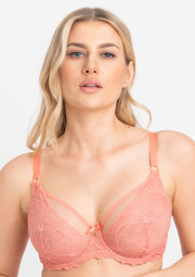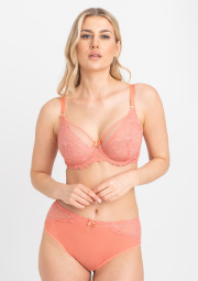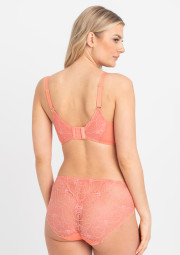 A123 to miękki biustonosz z fiszbinami na średni i duży biust. Subtelnie zbiera i unosi piersi. W znacznej części zakrywa biust. Miseczki biustonosza wykonane są z subtlenej koronki.