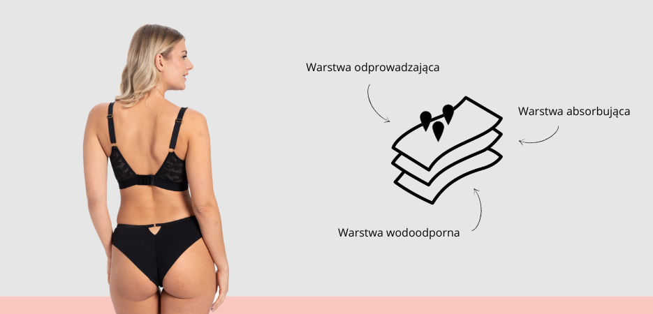 Majtki menstruacyjne składają się z kilku współdziałających ze sobą warstw, które zapewniają chłonność, suchość i ochronę przed przeciekaniem.