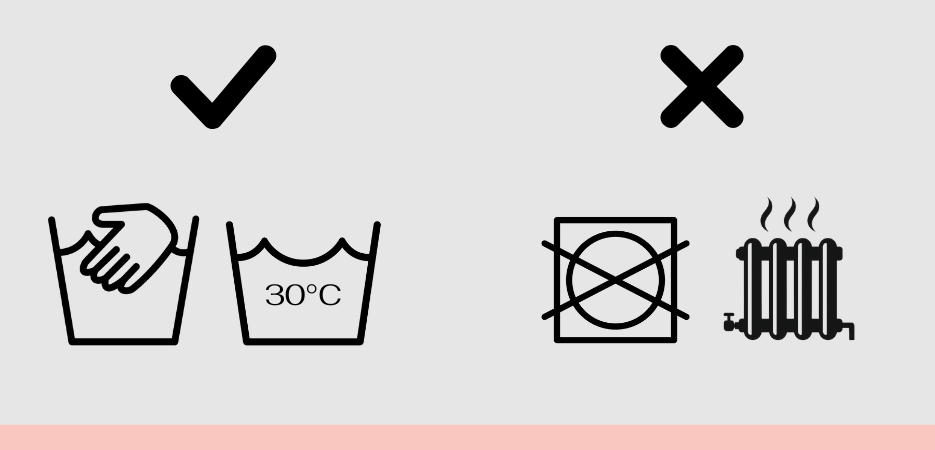 - Wypierz ręcznie lub w pralce w temperaturze maks. 30°C