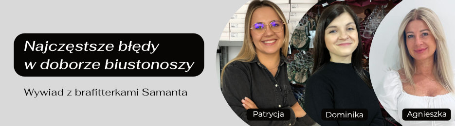 Rozmawiamy dzisiaj z ekspertkami Samanta: Patrycją Dedą-Warmuz, Dominiką Urbańską i Agnieszką Brdulak– brafitterkami, które na co dzień pomagają kobietom odkryć, jak wielką różnicę może sprawić dobrze dobrany biustonosz.